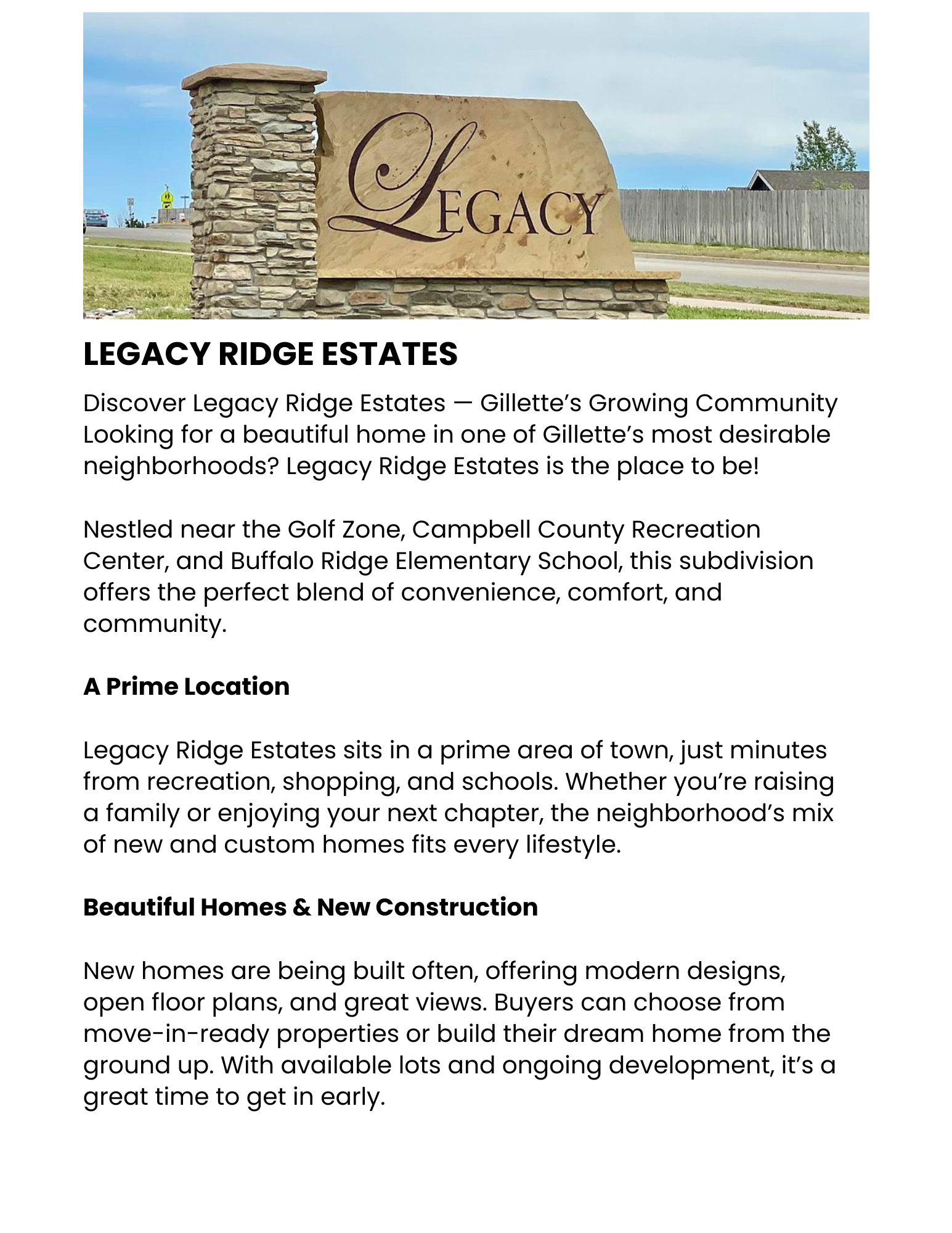Legacy Ridge Estates Subdivision | The Perfect Place to Call Home!